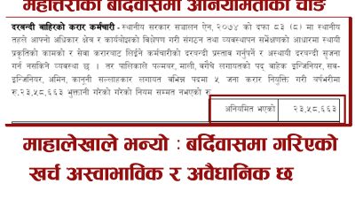 बर्दिवास नगरपालिकामा बेथिति- शीर्षक मिलाएर लाखौ अनियमितता